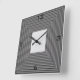 Une horloge murale carrée rayée noir et blanc avec un centre carré blanc. Le design a été contourné numériquement pour produire un effet saisissant comme un grand cadre avec une image au milieu. Les chiffres sont noirs.