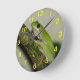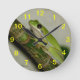 Une jolie, verte grenouille d'arbre, montrée sur une horloge murale.