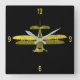 Photographie originale d'un avion bi-plane vintage, traitée dans un style graphique illustré et placée sur la face de l'horloge pour faire une déclaration artistique. Cette horloge acrylique est imprimée avec des processus spéciaux qui sont de la plus haute qualité et une seule batterie AA est nécessaire.