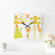 Horloge murale de cuisine d'inspiration rétro amusante, avec des graphiques d'éléments oranges et vert clair cuisine et des numéros orange foncé. Customisez avec votre propre texte ou laissez tel quel.