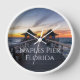 C'est la belle jetée au large de la ville côtière de Naples, en Floride. La côte paradisiaque de Floride et une destination populaire. Porte historique connue pour la pêche, l'observation des oiseaux, l'observation des dauphins et les vues pittoresques sur le coucher du soleil. Horloge murale personnalisée en blanc tendance.