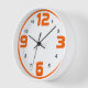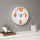 numéros en gras [12,3,6,9] en orange vif avec l'effet d'ombre d'un ton plus foncé. Une bordure circulaire de la même couleur des figures principales les complète parfaitement.