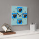 Photos d'animaux de compagnie. Personnalisez avec une image de votre animal de compagnie à montrer dans les 12, 3, 6, et 9 taches sur cette horloge "patch work quilt". Votre image carré sera placée dans le cadre en forme de coeur bleu. L'Arrière - plan peut être Customisé/modifié en couleur de votre choix.