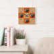 L'image d'animal de compagnie apparaît dans les 12, 3, 6 et 9 points de cette horloge "patch work quilt". Votre image carré sera placée dans le cadre en forme de coeur rouge. L'Arrière - plan peut être Customisé/modifié en couleur de votre choix.