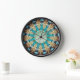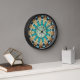 Horloge Plumes Turquoise, marron, bleu et vert Mandala