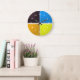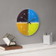 Carrés en quatre couleurs : les coins se rencontrent au milieu de la face de l'horloge. Bleu, jaune, orange et noir couvrent les heures du matin, de l'après-midi, du soir et de la nuit et ont des bords tridimensionnels. Des chiffres blancs apparaissent au-dessus des carreaux.