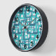 Cette horloge murale a un design moderne du milieu du siècle de rectangles ouverts en bleu sur des rectangles ouverts en bleu oeuf de robin.