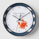 Nautical stripes and a Red Crab decorate this nautical clock which can be personalized with any name, names or saying! Great for the boat or beach house.