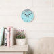 Horloge Ronde Aqua bleu Turquoise Parties scintillant argent Mon