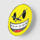 Le visage emblématique, mis à jour avec des accolades orthodontiques.