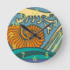 Horloge Ronde Blue Ocean Waves Nautilus Seashell Motif Nouveau