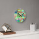 Cette horloge murale a un design moderne boho de rectangles attachés à des lignes horizontales de différentes tailles et couleurs boho.