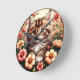 Un chaton adorable, assis dans une sublime bordure circulaire fleurie, crée une composition élégante et joyeuse qui représente l'innocence, la beauté et la chaleur de la nature.