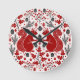 Motif de forêt d'écureuils rouges avec des cônes de pins, branches de pins, glands, feuilles de chêne et baies. Idéal pour une maison de lac ou un décor de chambre saisonnier. Art original de Nic Squirrell.