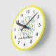 This simple and sunny floral print round wall clock can be personalized with your own text. You can change the background color as well. Cute vend de l'espace.