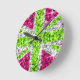 Fly the UK flag with this fun Union Jack design featuring stars scattered over a stylised "sequin look" pattern background. Wall clock with a lime green, white, silver grey and pink customizable design for you to personise with your own text, pictures and ideas. Other options. Please note this a printed digital image, it does not shine or contain real glitter or sequins.