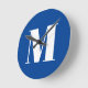 Horloge Ronde LETTRE INITIALE Bleu Profond Monogramme Moderne De