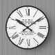 Une horloge murale pour un pub, un bar, une maison publique, un bar à cocktails ou un bar à vin. L'horloge a le nom de l'entreprise et aussi l'adresse. De beaux chiffres de style romain et un arrière - plan blanc propre.