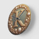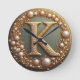 Luxurious gold letter monogram embellished with pearls, diamonds and ornate baroque filigree in a circular decorative frame; elegant, regal and highly detailed design for branding or editorial use.