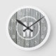 Horloge Ronde Monogramme Gris Blanc Distressed Wood