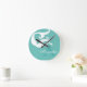 Designed by Sandy Closs part of the ocean-themed decor. Personalized with name monogram White mermaid on Aqua Teal blue Round Clock.