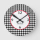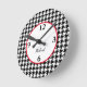 Horloge Ronde Nom, Houndstooth Motif Accent rouge 8 pouces Acryl