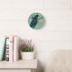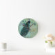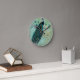 Conçu pour correspondre à la suite de mariage du même nom, cette horloge de mariage ou d'anniversaire personnalisée élégante et sophistiquée est un design moderne merveilleux mais vintage. C'est parfait pour un cadeau de douche de mariée ou de mariage ! La combinaison d'éléments d'art vintage et d'œuvres d'art aquarelles contemporaines peintes à la main par Audrey Jeanne Roberts donne une qualité belle et intemporelle à ce design. Un paon botanique vintage majestueux repose sur une grande branche d'arbre sur des volutes élégantes gravées. Le fond est un bleu aqua, dentelle aquarellée à la main sur parchemin et motif grunge qui ressemble à une tache de thé. Il y a environ 10 couleurs de fond disponibles.