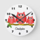 Horloge Ronde Red Owls Design Personalised