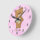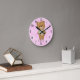 Adorable personalized child's nursery / child's menacom wall clock with a pink molk background, lovable baby girl Teddy Bear a baby rattle. Customize the background color, name, or add your own text. This wall clock makes a great addition to your special child's nursery ! All our products can be custom designed to meet your needs at no extra charge. Simply contact us through our store. Coordinating products available: Just ask us!