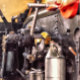 Vue du conducteur du train à vapeur depuis la plaque de marche des commandes du train à vapeur.