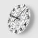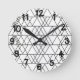 Cette toute horloge a un design moderne du milieu du siècle de triangles blancs courant horizontalement fait de lignes noires.