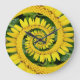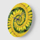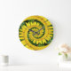 L'horloge spirale florale jaune sur l'arrière - plan vert, la spirale cérébrale soufflante créée avec l'effet Droste de la simple fleur jaune