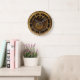 Horloge dorée et noire unique avec spirale au centre. Idéal pour la maison ou le bureau !