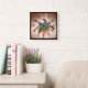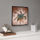 Tortue à carapace bleue et verte. Arrière - plan est ombragé de couleurs en cuivre avec un effet d'ombre sous la coquille de tortue. Les chiffres sont noirs en gras avec des marques de hachage minuscules et un cadre noir large. Photo de la peinture à la soie originale de Susan Lilly.