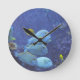 Il s'agit d'une horloge murale ronde décorée d'une photo de poissons tropicaux.