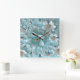 Horloge turquoise blanche florale