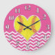 Chevron rose et blanc et horloges murales jaunes du base-ball de coeur du base-ball pour des filles. Coeur mignon superbe du base-ball avec les points roses semblants vitreux du base-ball réglés par conception blanche populaire de chevron sur l'arrière - plan de roses indien. Changez le rose en N'IMPORTE QUEL arrière - plan de COULEUR ou appelez moi, Linda pour changer le chevron blanc, le base-ball jaune ou le base-ball rose piquant pour vous sans frais supplémentaires. APPELEZ Linda à : 239-949-9090