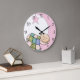Horloges de bébé rose avec bébé mignon dormant sur une lune avec une étoile et un arrière - plan rose. Joli design pour une chambre bébé, une salle de jeux pour nouveau-nés ou des jeunes filles.