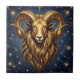 A mystical golden Ram Aries Astrology sign tile with a blue and gold starry background.