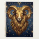 A mystical golden Ram Aries Astrology sign planner with Aries dates and traits on the back, along with compatibility and other fun Aries facts.