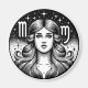 Eine schwarz-weiße himmlische Jungfrau Vektorkunst mit sterndem Hintergrund.