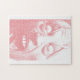 Rosa- und weißesschwieriges Puzzlespiel eines Horrorgesichtes. Vervollkommnen Sie für Gestaltungs- oder Halloween-Grußgeschenk