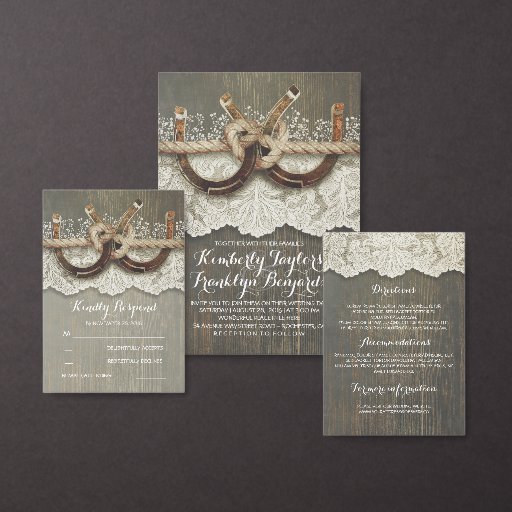Lace and Horseshoes Rustic Barn Wedding CollectionDesignt von Jinaiji Custom Invitations