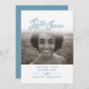 Beerdigungsprogrammordnung zweiseitig, einfach blau, grau und weiß in unseren Herzen für immer Beerdigungsprogramm. Einfaches und dennoch elegantes Programm, ersetzen Sie die Text- und Foto-Sample-Inhaber durch Ihre drei Fotos und Informationsdetails. Original Typografie und in unseren Herzen für immer Grafik und Design von Sarah Trett. www.sarahtrett.com für www.mylittleeden.com (Foto-Guilherme Stecanella auf Unsplash Model Foto ist nur ein Platzhalter für Sie zu ersetzen).
