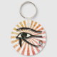 Das alte ägyptische Symbol, das Auge des Horus. Retro Sun zeichnend im Hintergrund. Störte Version. Benutzerdefinierte Schlüsselanhänger. Geschenkidee.