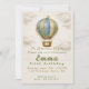 Mark your baby's most magical milestone with this vintage-inspired hot air balloon first birthday invitation, featuring a soft watercolor balloon in dusty blue, sage green, and warm cream tones against a dreamy clouded sky. The elegant script "The Adventure Begins" sets a heartfelt, storybook tone that parents will absolutely adore — making it feel less like a party invite and more like the opening page of your child's greatest story. Every element, from the gold-accented basket bearing the number "1" to the delicate scattered stars, has been carefully illustrated to create a cohesive, elevated look that stands out in any mailbox. All text is fully customizable, so you can effortlessly add your child's name, date, time, and RSVP details in just minutes. This is the kind of invitation parents save long after the party — a true keepsake of the year that changed everything.