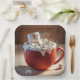 Ein fröhlicher Marshmallow-Schneemann entspannt sich in einer dampfenden Tasse heißer Schokolade, umgeben von Sahne und Mini-Marshmallows