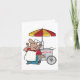 Ein Hot Dog Verkäufer mit seinem Hot Dog Karren. Dieses Design sieht auf dieser Grußkarte wirklich effektiv aus