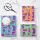 Hot Pink Big Cats in Neon Orange & Blue Hintergrun Geschenkpapier Set