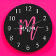 Hot Pink Black Modern Script Name Girl Monogram Große Wanduhr